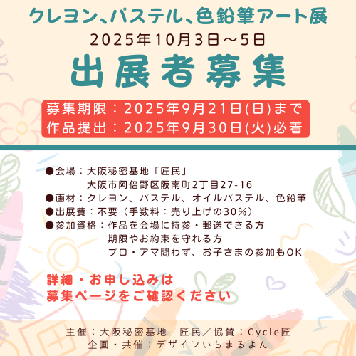 作品展の情報は大阪秘密基地LINEオープンチャットにてお知らせします。